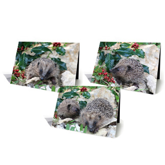 Pack of six assorted (photo or cartoon) hedgehog design Christmas Cards with blank inside.